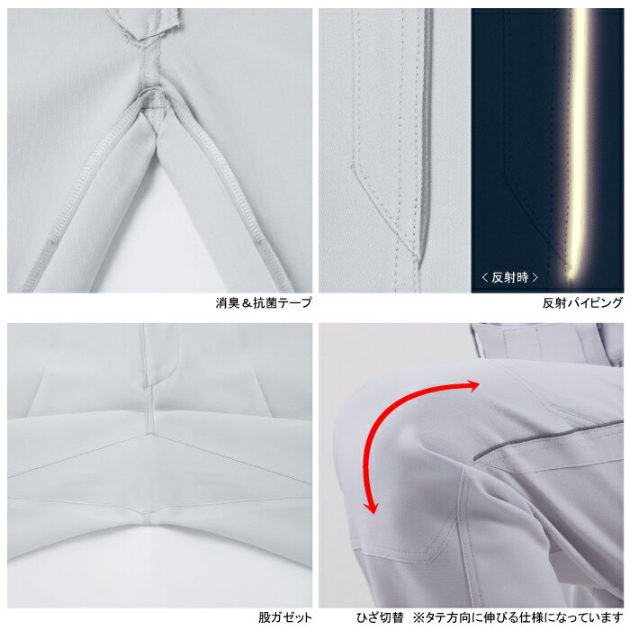 作業服 8310291〜106112〜120他のサイズを選ぶ●●商品説明●関連商品※83100製品制電ストレッチジャンパー※83101製品制電ストレッチノータックパンツ※83106製品制電ストレッチレディースパンツ※83116製品制電ストレッチレディースカーゴパンツ●秋冬用●素材:ボディフィールツイル ポリエステル100%●帯電防止JIS規格合格商品、帯電防止素材使用、消臭、抗菌、ストレッチ、防汚加工、消臭&抗菌テープ、股ガゼット、反射パイピング、ひざ切替●サイズ:70(ウエスト/70、ヒップ/92、ワタリ幅/32.5、股下/78)、73(ウエスト/73、ヒップ/95、ワタリ幅/33、股下/78)、76(ウエスト/76、ヒップ/98、ワタリ幅/33.5、股下/78)、79(ウエスト/79、ヒップ/101、ワタリ幅/34.5、股下/78)、82(ウエスト/82、ヒップ/104、ワタリ幅/35.5、股下/78)、85(ウエスト/85、ヒップ/107、ワタリ幅/36.5、股下/78)、88(ウエスト/88、ヒップ/110、ワタリ幅/37.5、股下/78)、91(ウエスト/91、ヒップ/113、ワタリ幅/38.5、股下/78)、96(ウエスト/96、ヒップ/117、ワタリ幅/39.5、股下/78)、101(ウエスト/101、ヒップ/121、ワタリ幅/40.5、股下/78)、106(ウエスト/106、ヒップ/126、ワタリ幅/41.5、股下/78)、112(ウエスト/112、ヒップ/131、ワタリ幅/42.5、股下/90ハーフ)、120(ウエスト/120、ヒップ/136、ワタリ幅/43.5、股下/90ハーフ)●カラー:ネービー、シルバー、チャコールグレー、ロイヤルブルー商品仕様ストレッチと製品制電もプラスし機能充実の男女ペアユニフォーム。