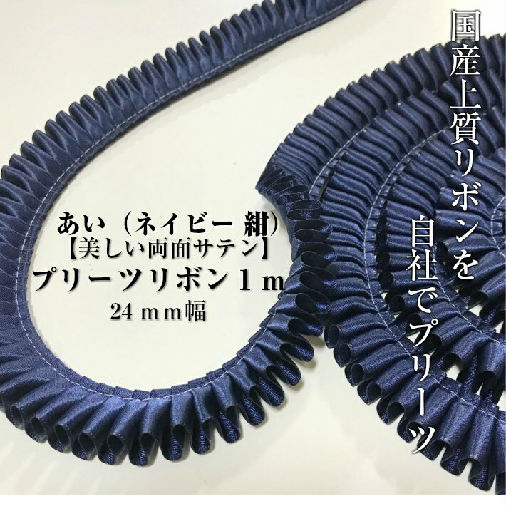 ロゼット リボン【あい】【プリーツ】リボン 24mm幅 プリーツリボン 1m 国産両面サテンリボン ロゼット ロゼッタ 作りに最適 ヘアゴム カチューシャ など 手作り アクセサリー バッグ など様々な手芸に使えます。自社のミシンで丁寧にプリーツ